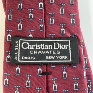Christian Dior Cravates 100% Silk Maroon Blue Wine Opener Tie