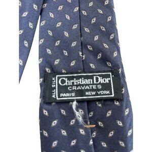 Christian Dior Cravates Navy Blue Men's 100% Silk Vintage Designer Tie