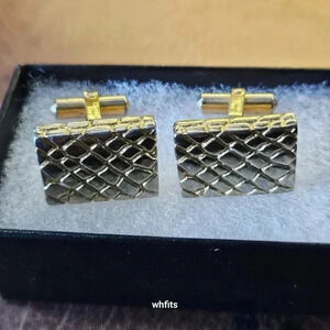 Christian Dior "Croc Leather" Gold Tone Cufflinks in preowned condition. Photos show all areas of minor wear such as rubbing.