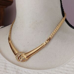 Christian Dior Crystal Embellished Gold Tone Statement Collar Necklace