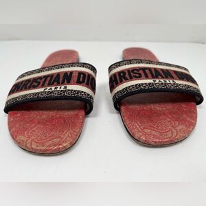 Christian Dior DWAY SLIDE - Cherry DWAY COTTON EMBROIDERY - Size 40/US 8.5