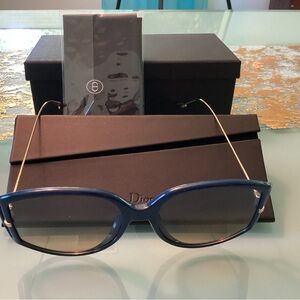 Elegant Christian Dior Directions2 unisex glasses with gold accents. Dark blue with box and tags. Brand new. Blue