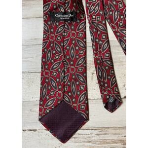 Christian Dior Dark Red and Navy Modern Looking 100% Silk Tie EUC