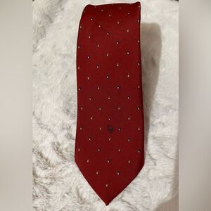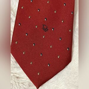 Christian Dior Designer Ruby Red w Accent Blue & Tan colors Tie Vintage, Rare!