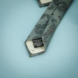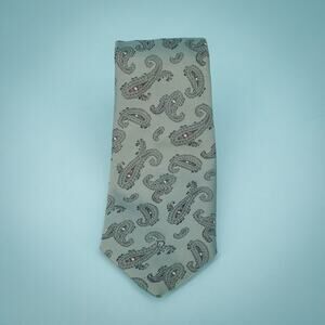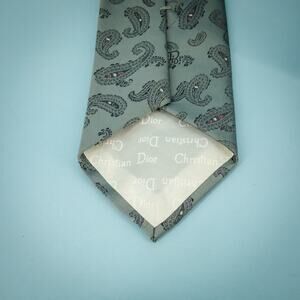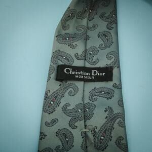 Christian Dior Designer Silk Blend Gray Black Paisley Print 3.5 Inch Tie Necktie