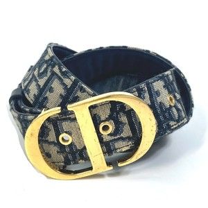 Christian Dior Dior Oblique SADDLE CD Buckle Belt Jacquard Women's Navy -