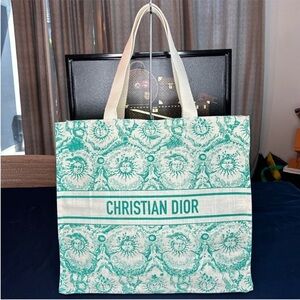 Christian Dior Dioriviera Linen Cotton Blend Tote Turquoise 2024 NEW Authentic
