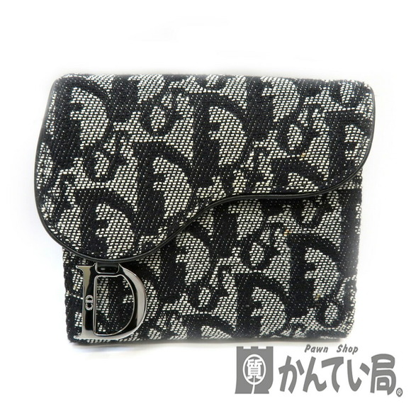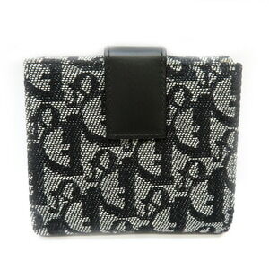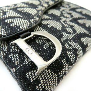 Christian Dior Double Hook Wallet Saddle Trotter Black Compact