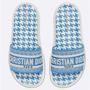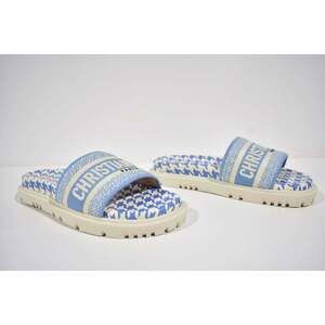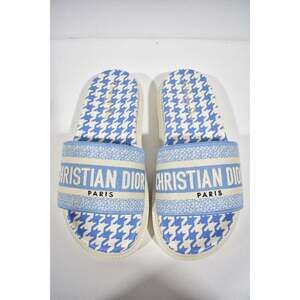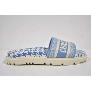 Christian Dior Dway Blue White Logo Houndstooth Slide Mule Flat Flop Sandal 36