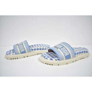 Christian Dior Dway Blue White Logo Houndstooth Slide Mule Flat Flop Sandal 41