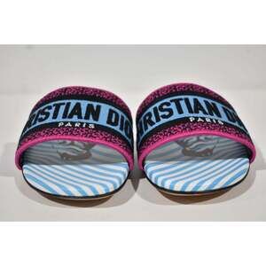 Christian Dior Dway D Jungle Blue Black Embroidered Logo Slide Flat Sandal 42