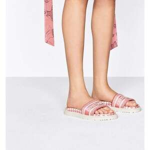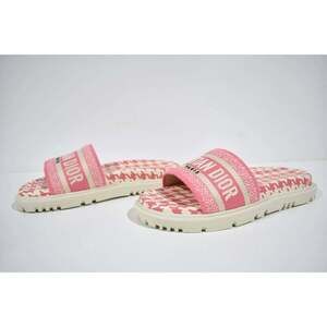 Christian Dior Dway Pink White Logo Houndstooth Slide Mule Flat Flop Sandal 38