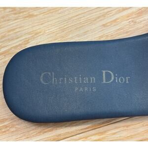 Christian Dior Dway Slides Womens Size 36 Navy Blue Cotton Flat Sandals Logo