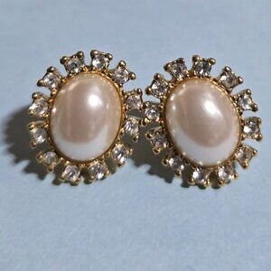 Christian Dior Faux Pearl Earrings Surrounding by Rhinestones Vintage