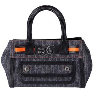 Christian Dior Flight Handbag Dark Gray Orange Multi Denim Leather