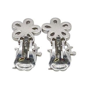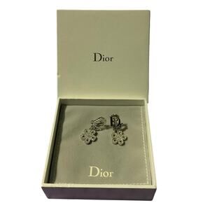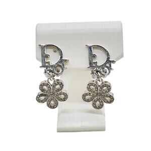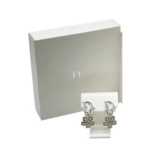 Christian Dior Flora Rhinestone x Metal Silver Earrings W/Box/Dustbag