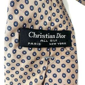 Christian Dior Silk Tie Taupe and blue Floral print Silk 2.75" width Excellent preowned condition