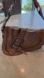 Supple leather with w bronzy color grey with dark leather trimming, snap closure