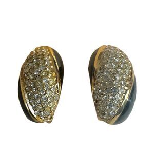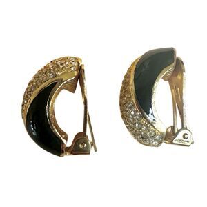 Christian Dior Gold & Black Enamel Rhinestone Clip-On Earrings ✨
