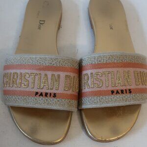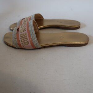 Womens Christian Dior Gold, Pink, Silver Canvas Lurex Metallic Embroidered Flat Sandals 38 1/2/8.5