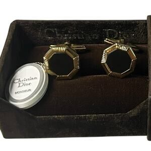 Christian Dior Gold Plated Octagonal Cufflink Black accent original box and tags