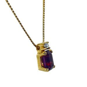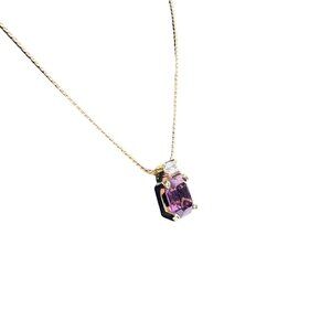 This Christian Dior necklace captures the timeless elegance of vintage jewelry with its gold tone chain and captivating pink emerald-cut rhinestone pendant. The intricate design is accentuated by a sparkling clear rhinestone, adding a touch of classic sophistication. A piece that embodies the allure and charm of a bygone era, perfect for collectors and admirers of vintage elegance. It has the metal tag CD and it is signed Chr. Dior.