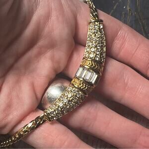 Christian Dior Gorgeous Vintage Gold and Rhinestone Sparkling Collar Necklace D2