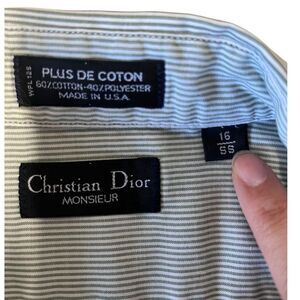 Christian Dior | Green Pin Stripe Short Sleeve Button Down Vintage Mens Shirt 16 SS