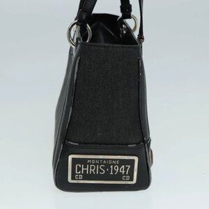 Christian Dior Hand Bag Leather Canvas 2way Black Silver Auth 89612