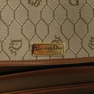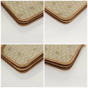 Christian Dior Honeycomb Canvas Chain Shoulder Bag PVC Beige Gold Auth ti3242