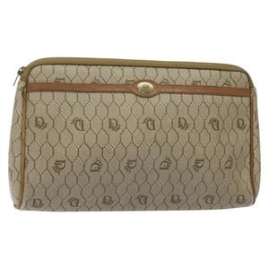 Christian Dior Honeycomb Canvas Clutch Bag PVC Beige Gold Auth ti3116