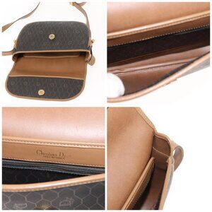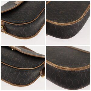 Christian Dior Honeycomb Canvas Shoulder Bag PVC Black Gold Auth BA7309