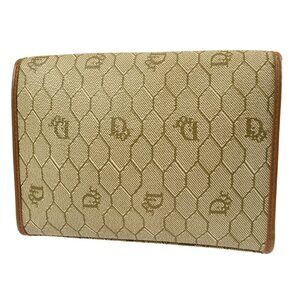 Christian Dior Honeycomb Pattern Clutch Bag Pouch Beige PVC