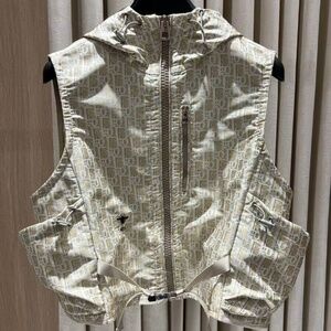 Christian Dior Hooded Windbreaker Vest Monogram Oblique Beige L