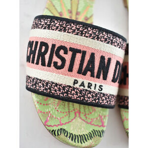 Christian Dior In Lights Dway Green Pink Embroidered Logo Slide Flat Sandal 35