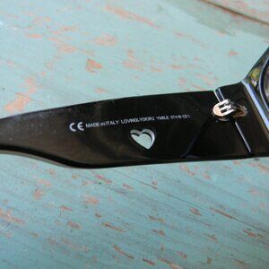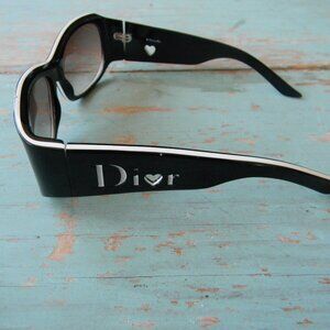 Christian Dior LOVINGLYDIOR2 BLACK Heart LOGO DETAIL SUNGLASSES, BLACK FRAMES WITH WHITE TRIM. GRAY LENSES. OVERALL GOOD USED CONDITION, SUNGLASSES ONLY NO CASE. A FEW EXTREMELY FAINT KNICKS TO THE WHITE TRIM ON TOP AND BOTTOM AROUND LENSES. LENSES ARE IN EXCELLENT USED CONDITION.
