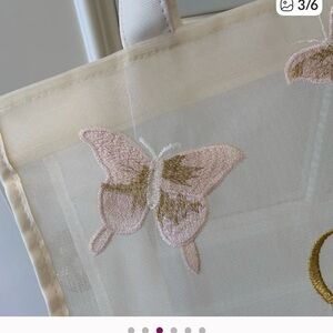 This bag was originally offered as a VIP gift or complimentary gift with Dior fragrance or beauty purchases. it features an embroidered design with the iconic "CD" logo and floral/butterfly motifs.