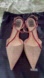 Chic Dior heels with a striking beige and red design. Perfect for adding elegance to any outfit.