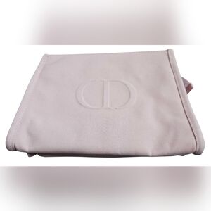 New Christian Dior light pink canvas makeup bag with zipper closure. Pouches include a sample of Miss Dior parfum, 0.03 fl.oz Color may vary due to camera lighting.