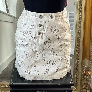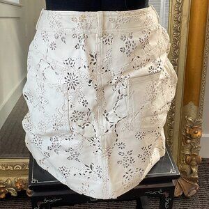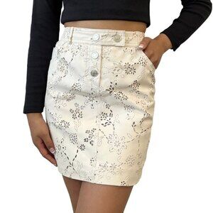 Christian Dior Logo Mini Skirt Silver Flower Lambskin Pockets Size 8 Cream