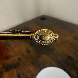 Christian Dior Logo Tie Clip in Gold Tone Men Formal Suit Accesories Authentic