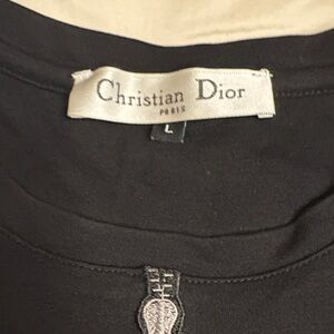 Christian Dior black top with embroidered zipper accent. Ideal for versatile styling.
