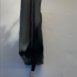 Super cute black and navy Dior cosmetic case with zipper closure and inside mesh pockets with zipper.