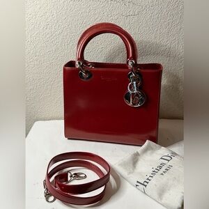Christian Dior Medium Red Polished Leather Lady Dior w/ Strap