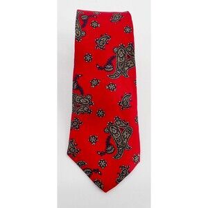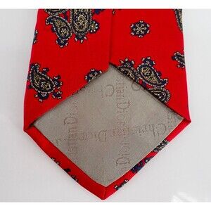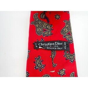 Christian Dior Men's 100% Silk Neck Tie Red Paisley WPL 125 Vintage 54" x 3.5"