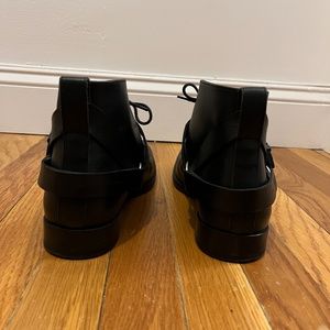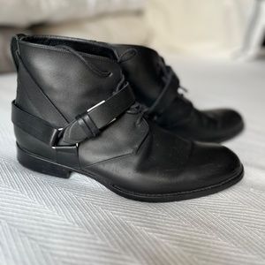 Very gently worn lace up ankle boots in great condition. Biker style leather strap buckles over the laces. Leather sole in excellent condition with steel reinforced toe. Made in Italy euro size 41 or American 8.5 Dior dust bag included. Please let me know if you have any questions!