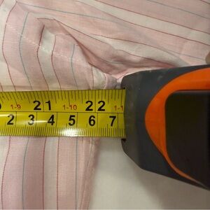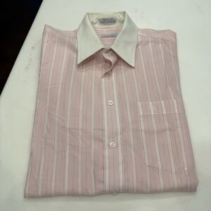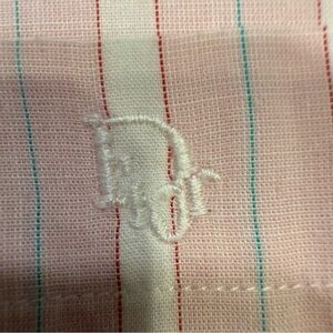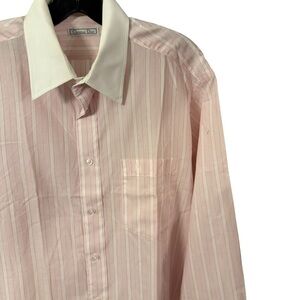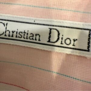 BRAND NEW without tags. Christian Dior men’s buttons down shirt. Pink & white stripe with a solid white collar, front pocket with embroidered Dior logo, 55% cotton 45% polyester, model Plus d’e Coton Durable Press. Size 15 1/2 32-33 MSRP $540