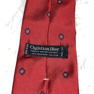 Christian Dior Men’s Embossed Neck Tie Red Blue Polyester Silk Blend
