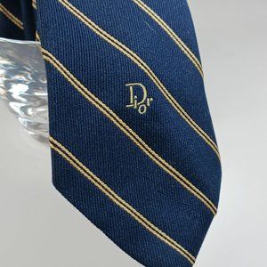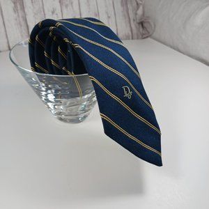 Christian Dior Men's Necktie Navy Blue Yellow Diagonal Stripes