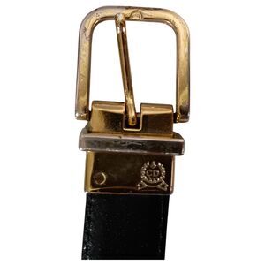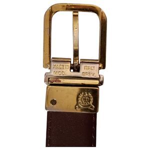This vintage Christian Dior Men's Reversible Belt features a stylish gold buckle and a combination of black and burgundy leather. The belt is 30 inches in length and 1 inch in width, with stainless steel hardware. Made in Italy, this designer piece exudes a classic and dressy style, perfect for adding a touch of luxury to any outfit. The reversible feature adds versatility to the belt, making it a practical and stylish accessory for men who appreciate high-end fashion. Width: 1", Length to the tip: 35"